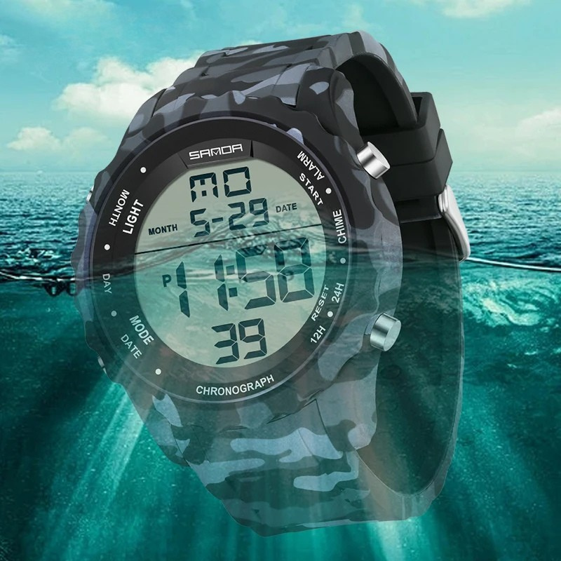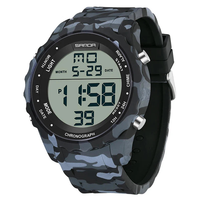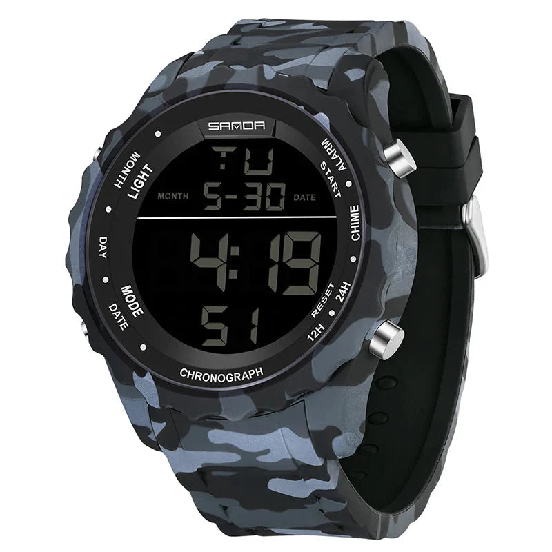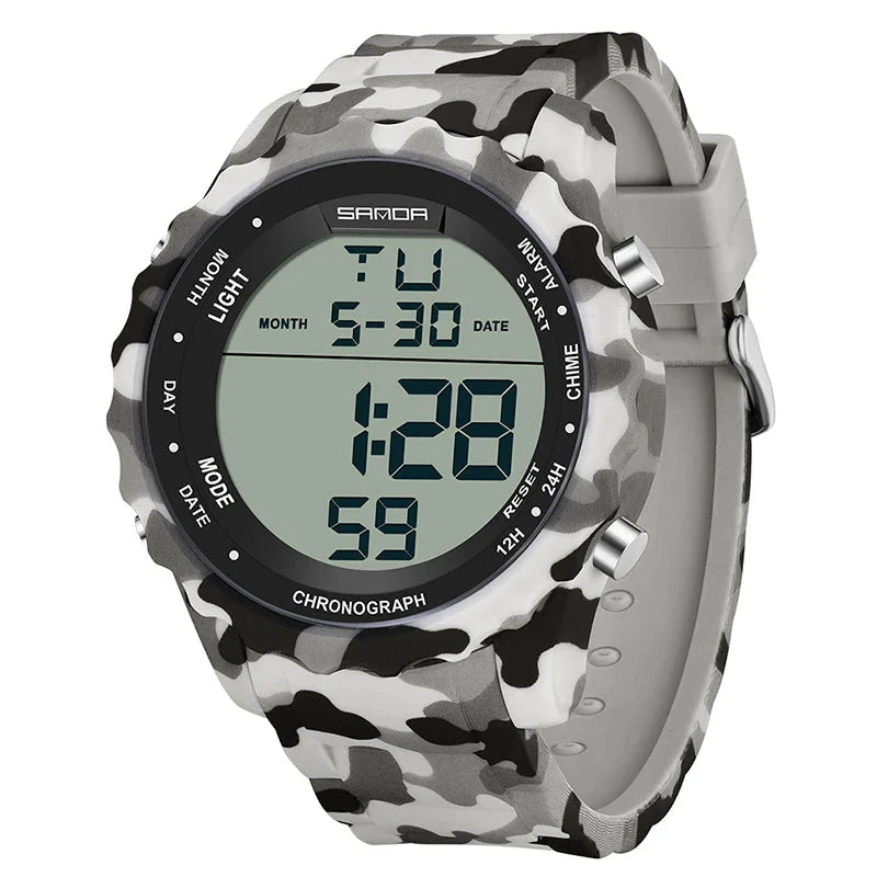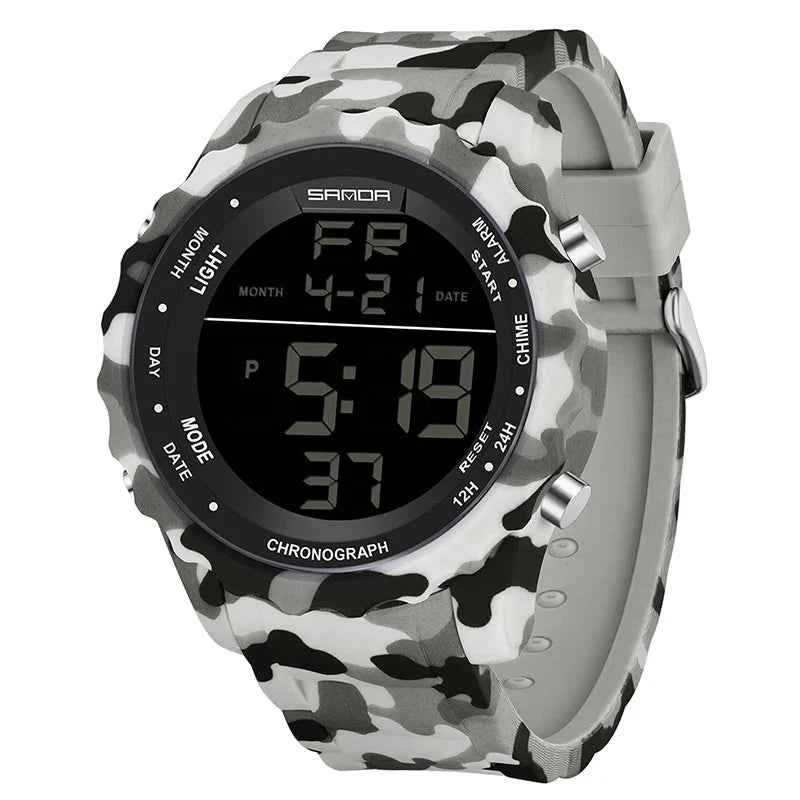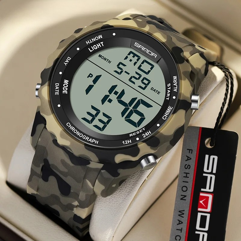 Experimente o poder e a precisão do Relógio Digital Militar Sanda , projetado para aventureiros que exigem desempenho e estilo. Com um design camuflado robusto, este relógio é mais do que um acessório; é um companheiro confiável para todas as suas atividades ao ar livre.